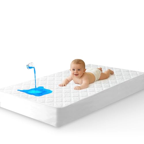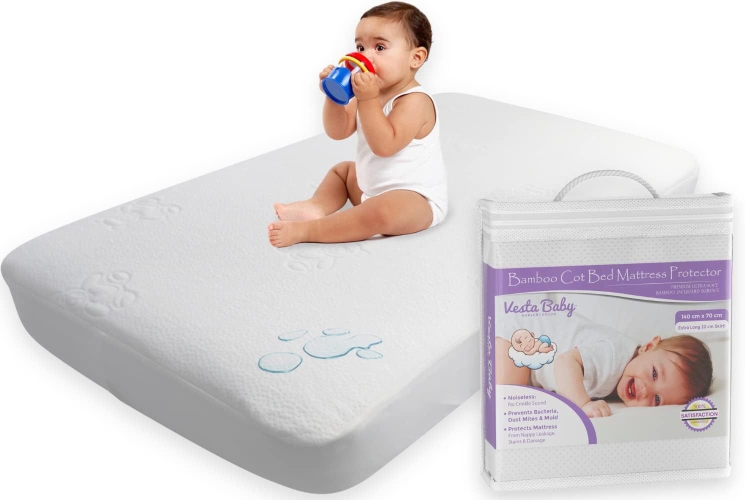 Waterproof Cot Bed Mattress Protector 70 x 140 cm – Soft & Noiseless Fitted Mattress Cover with Bamboo Viscose Fabric, Machine Washable, for Baby & Toddler Beds