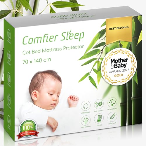 Cot Bed Mattress Protector 140 x 70cm – Waterproof Bamboo Fitted Cot Mattress Cover – Breathable Waterproof Cot Bed Mattress Protector – Soft Hypoallergenic Sheet for Toddler Bedding