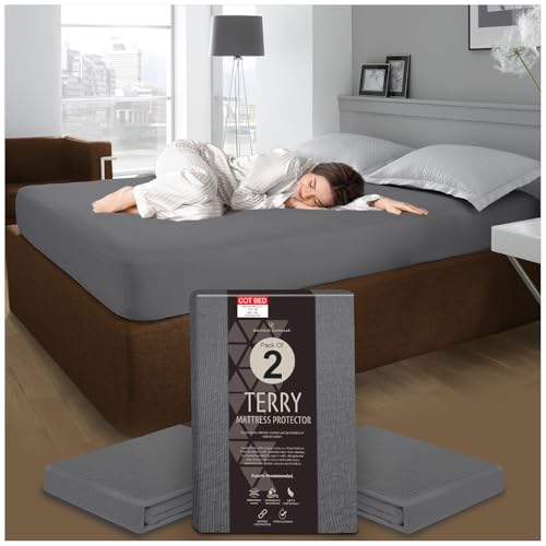 GC GAVENO CAVAILIA Terry Towel Mattress Protectors - Pack of 2 Cot Bed Mattress Protector Fitted Sheet - Waterproof Mattress Cover - Breathable 30cm Deep Mattress Protector (70 x 140cm) - Charcoal