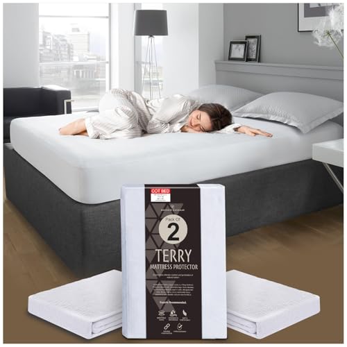 GC GAVENO CAVAILIA Terry Towel Mattress Protectors - Pack of 2 Cot Bed Mattress Protector Fitted Sheet - Waterproof Mattress Cover - Breathable 30cm Deep Mattress Protector (70 x 140cm) - White
