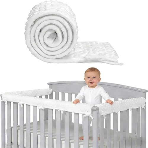 PTKG Breathable Cot Liner Padded Rail Cover & Headboard Protector with Adjustable Ties Cot Liner Breathable Boys Girls Baby Cot Set Bed Rail Cover Soft Padded Side,E1,180cm