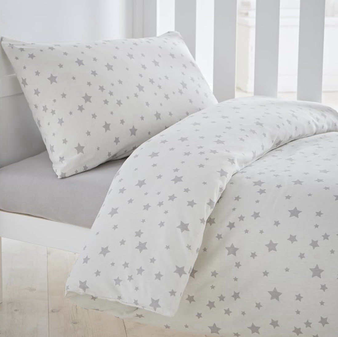 Bloomsbury Mill - Cot Bed Duvet Cover Set - Toddler Bedding Set For Boys and Girls - Grey and White Stars Kids Bedding - Cot Duvet Cover & Pillow Case Set - 120x150cm