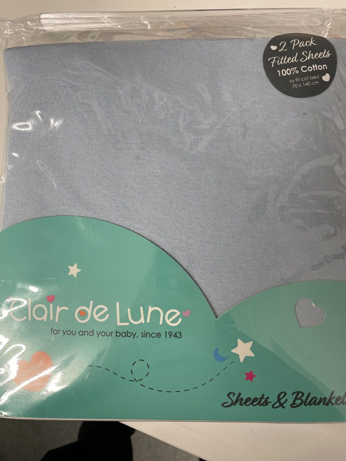 ClairdeLune Cot Bed Fitted Sheet 2 Pack 100% Jersey cot Sheets 120x60cm cm BLUE