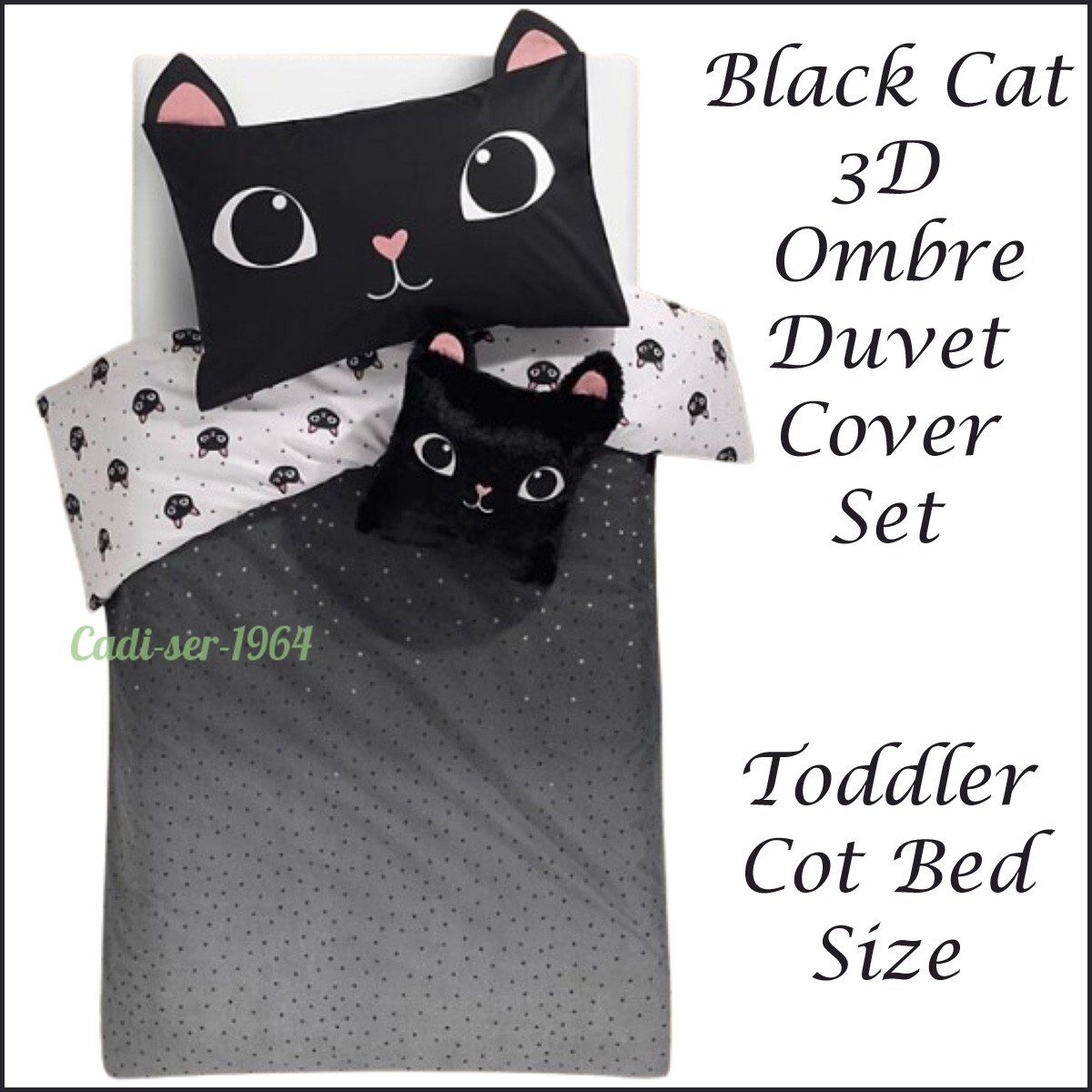 Black Cat 3D Ombre Toddler Cot Bed Duvet Cover Set NEW