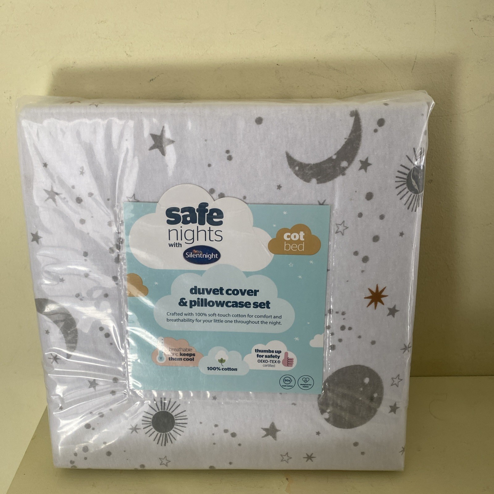 Silentnight Safe Nights Cot Bed Duvet Cover & PillowCase Set Cotton Free Tracked