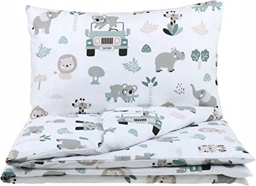 BABYMAM 2Pc Set to Fit Cot 120x90cm Cotton Baby Bedding Cot Toddler Duvet Cover and Pillowcase On Safari