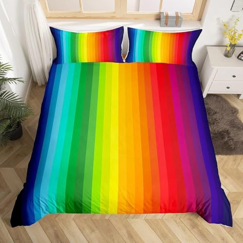 Rainbow Bedding Set,Stripe Teen Girls Vivid Colorful Vertical Lines Palette abstract art Design,Decorative Comforter Cover 2 Pieces Junior/Cot Bed (1 Duvet Cover & 1 Pillow Shams),Zipper