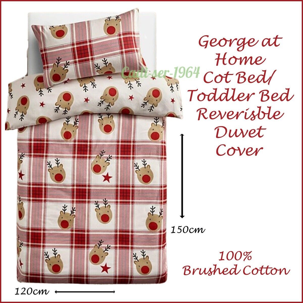 Christmas Reindeer Toddler/Cot Bed Reversible Duvet Cover 100% Brushed Cotton