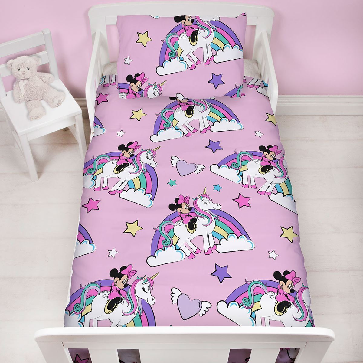 Minnie Mouse Believe Cot Duvet Cover Set Unicorns Stars Girls Toddler Bedding