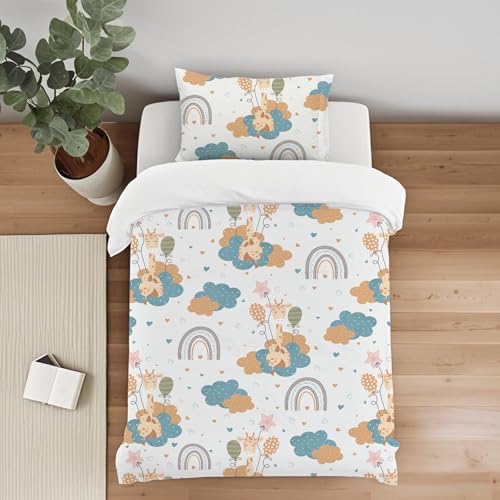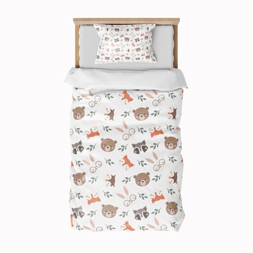 DJDEA Cot Bed Duvet Cover Set, Animals Toddler Bedding Set With Zip Fastening, Kids Duvet Cover 120x150cm With 40x60 cm Pillowcase
