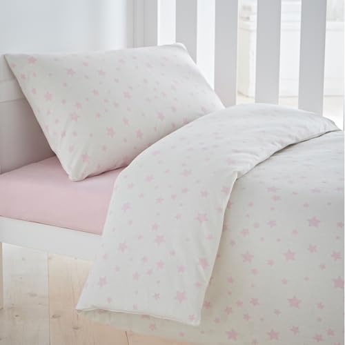 Silentnight Safe Nights Cot Bed Duvet Set - Breathable 100% Cotton Jersey - Super Soft Kind to Skin - Duvet Cover & Pillowcase for Toodler Child Junior Quilt - 150x120cm - Hypoallergenic, Pink Stars