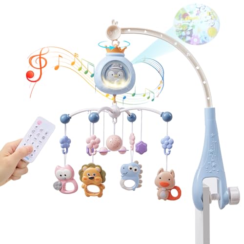 Warmiehomy Baby Cot Mobile with Light and Music Cot Mobiles for Babies with Penguin Projection Timing Function Remote Control Nursery Mobiles for Babies 0-12 Months