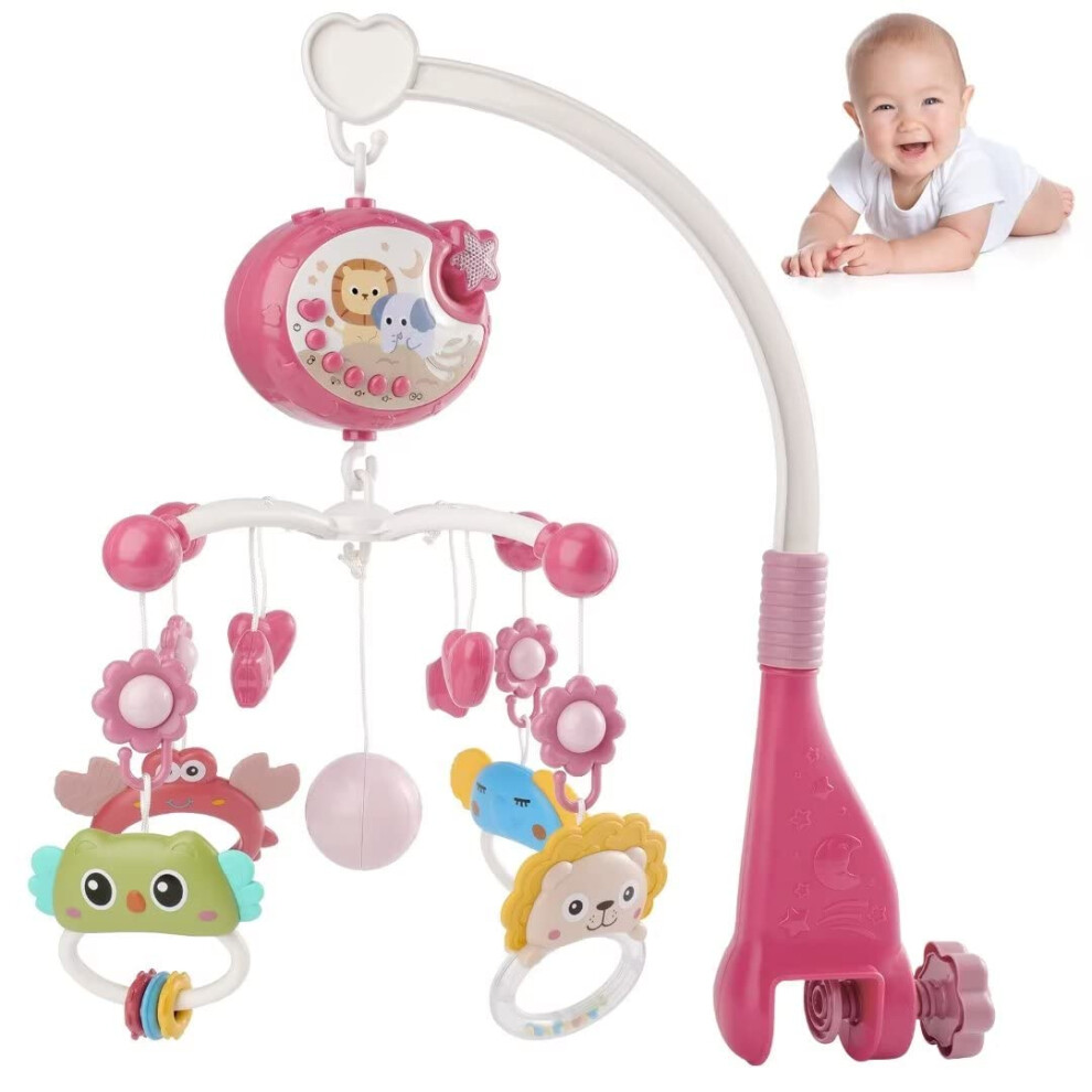 Aolso Baby Crib Mobile with Music, Lights, Projector and Remote Control - Cot Mobile Toy for Boys & Girls (Pink)