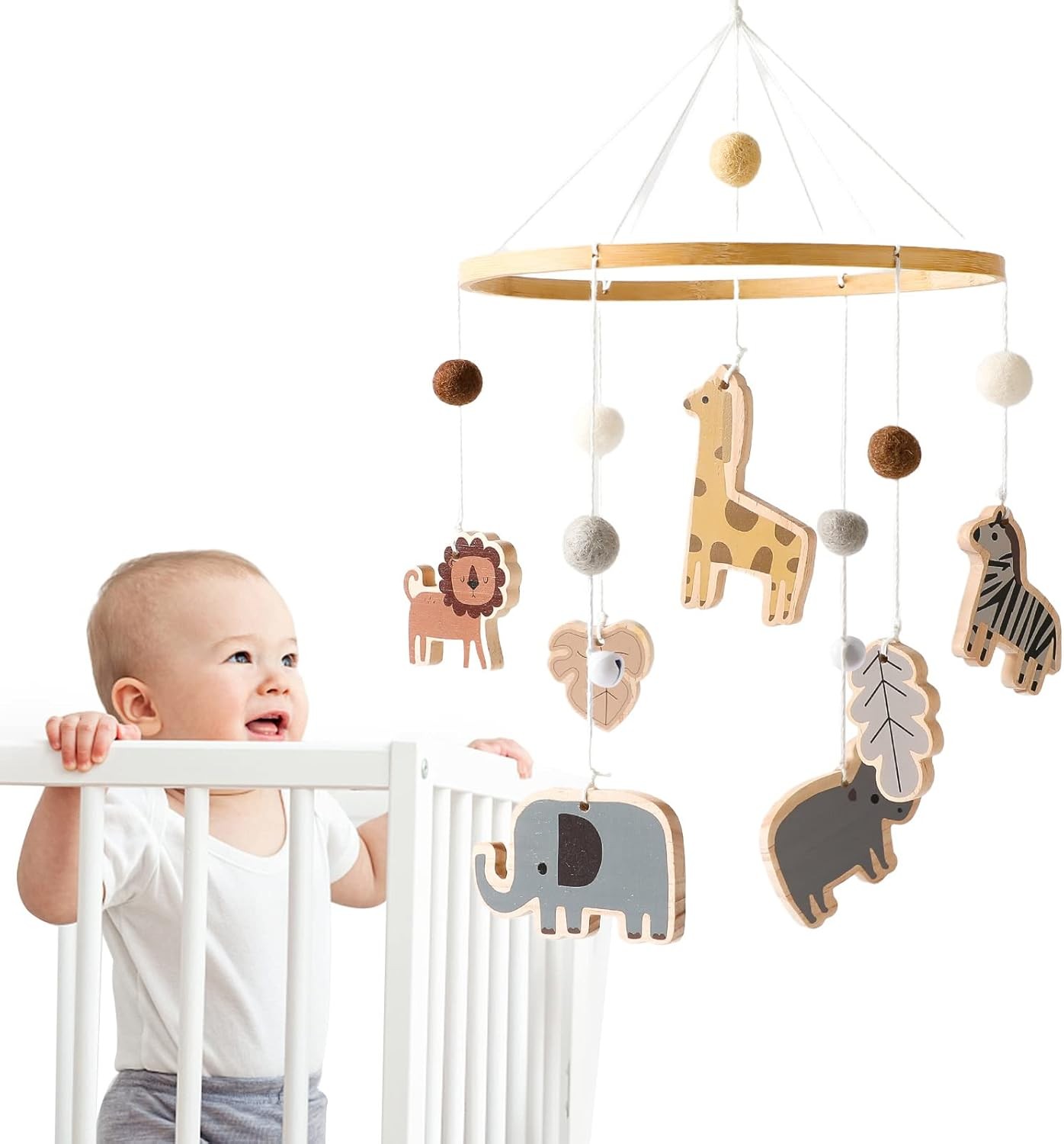 Hugsweet Baby Cot Mobile - Wooden Crib Mo-bile For Babies - Baby M-obile Holder Crochet Cot Mo-biles, Hanging Wind Chime Nursery Decoration For 0-12 Months New born Boys Girls