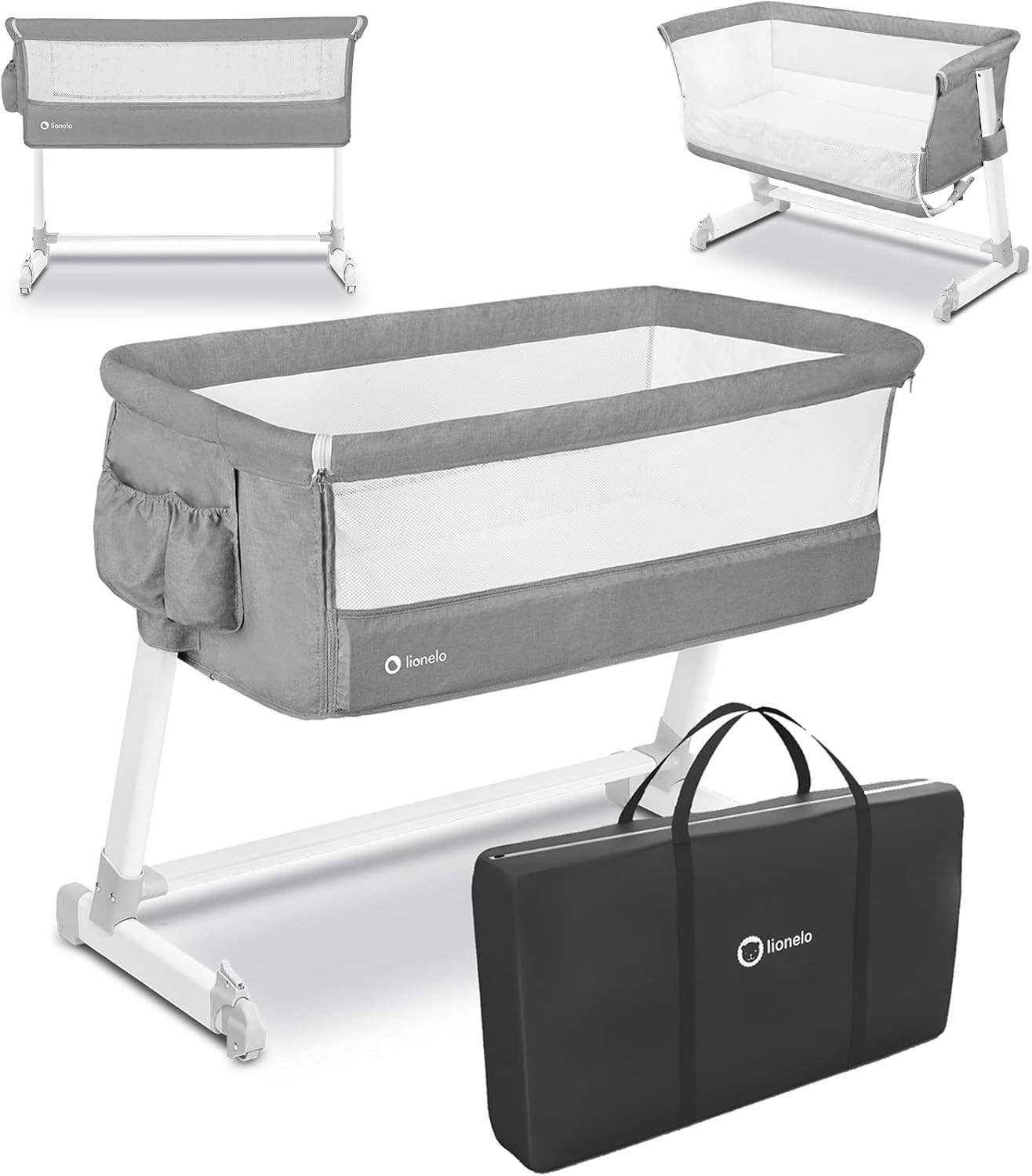 2in1 Baby Bedside Crib Adjustable Height Incline Cot with Wheels & Storage Grey