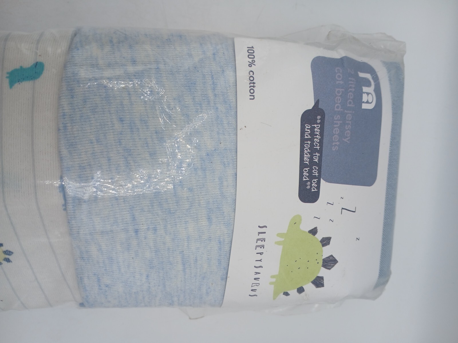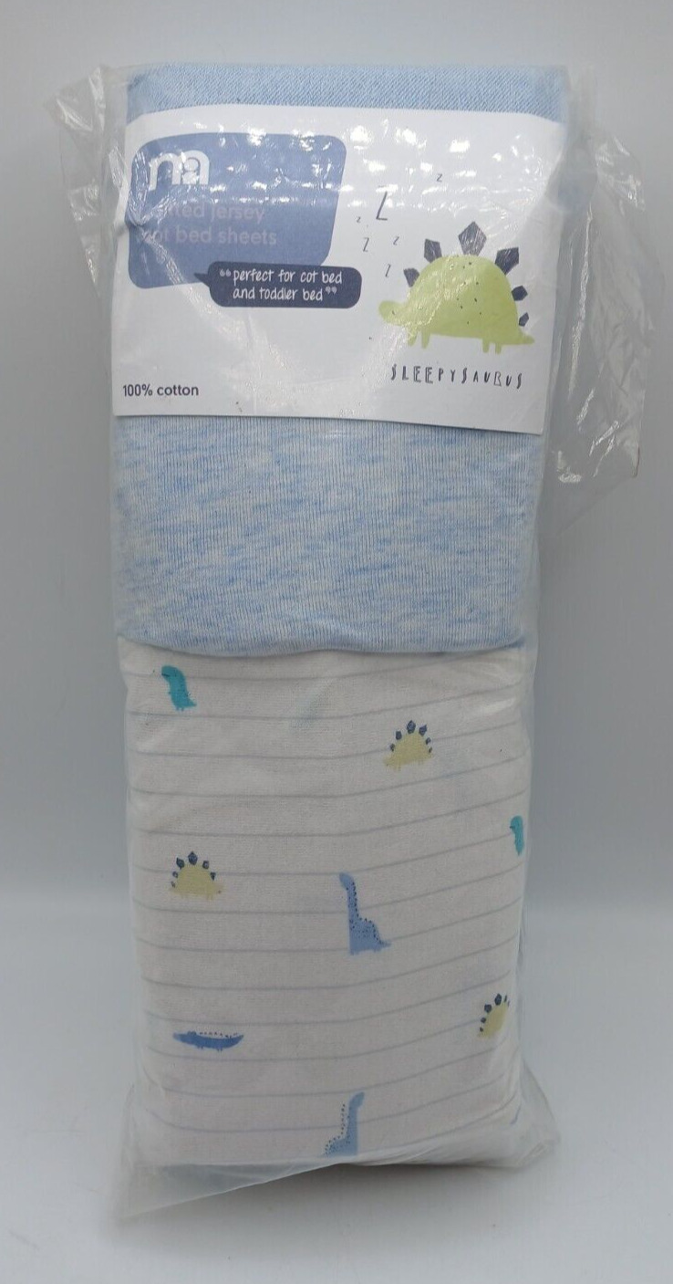 NEW Mothercare 2fitted jersey COTBED SHEETS 100%COTTON BLUE/WHITE DINO'S SHELF H