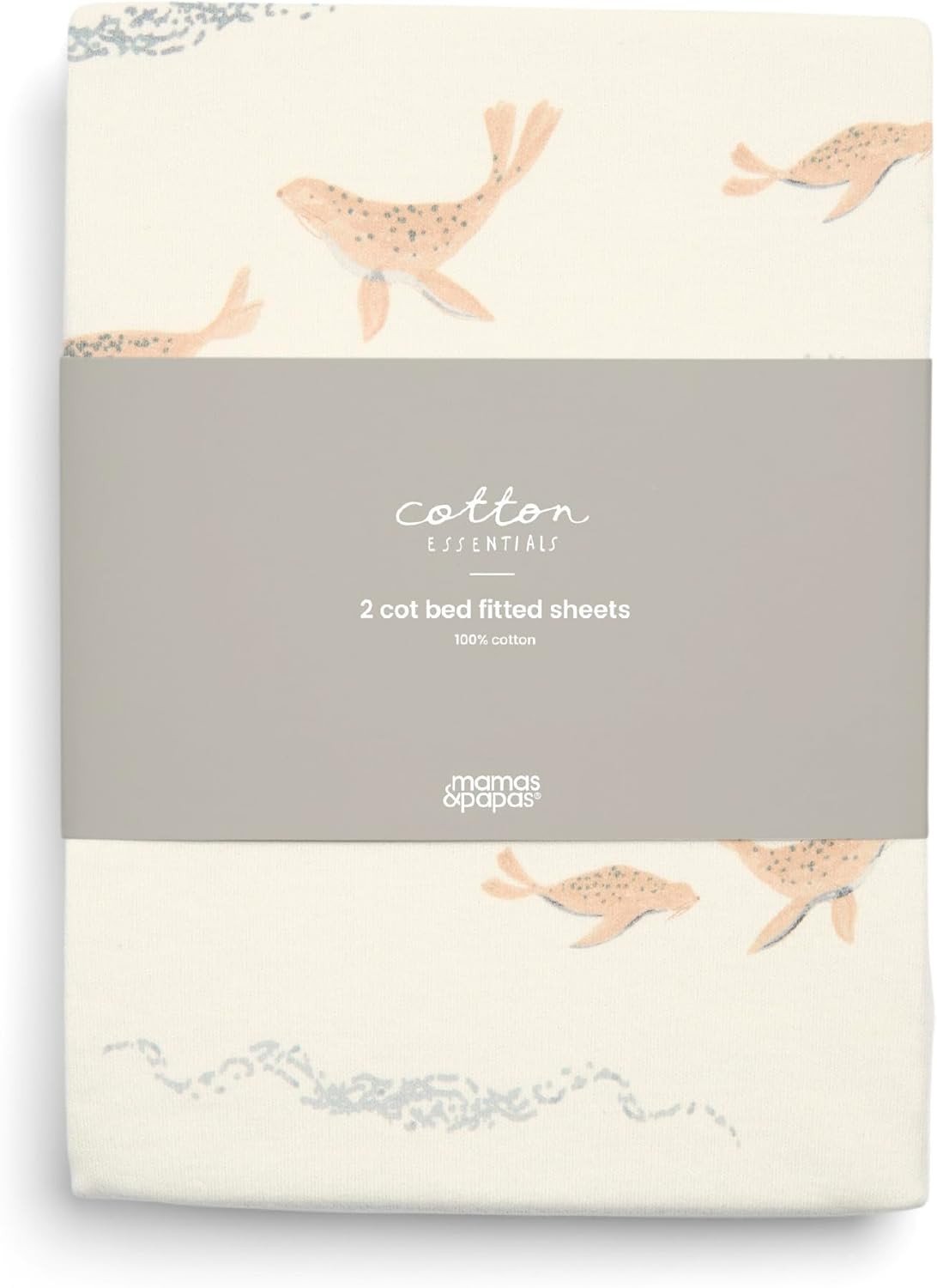 Mamas & Papas 2 Pack Cot/Bed Fitted Sheets, Seals (142X70X19Cm)