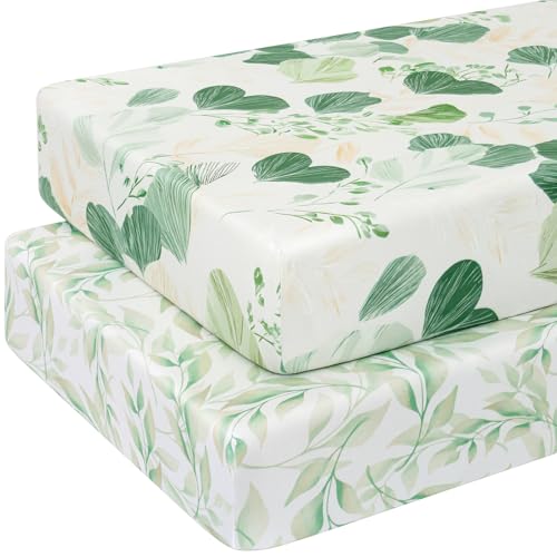 Yukkidds Cot Sheets 120x60 Fitted Cotbed Sheet 2 Pack Baby Cot Sheets Super Soft & Breathable Microfiber Green Leaf