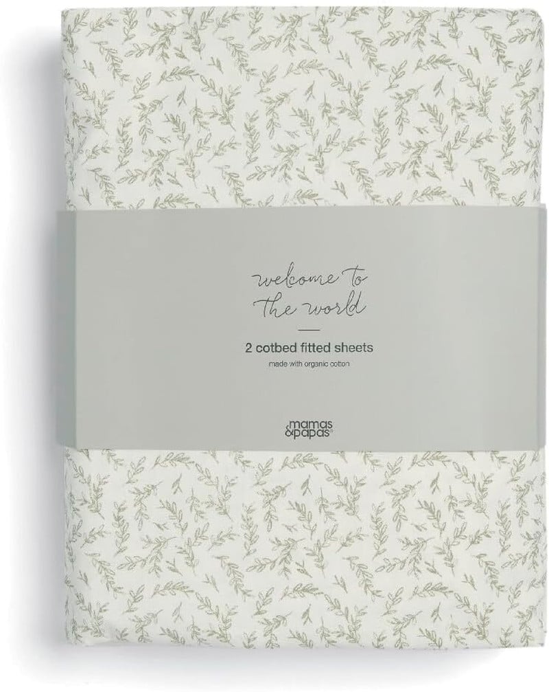 Mamas & Papas 2 Pack Cot/Bed Fitted Sheets, Seedling Leaf