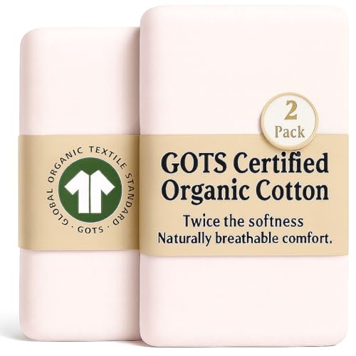 Bunnyjik - GOTS Organic Cot Bed Sheets 140 x 70 fitted – Cozy & Luxurious 190GSM Organic Cotton- Pack of 2 Cotbed Fitted Sheet - Toddler Bed Sheets 140 x 70 Cot Sheets 140 x 70 Fitted