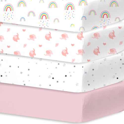 Little Grape Land Cot Sheets Fitted 60cm x 120cm, 4 Pack Baby Fitted Sheets for Boys Girl, Universal Fitting Cots and Beds, Ultra Soft Breathable Baby Crib Sheets, Rainbow