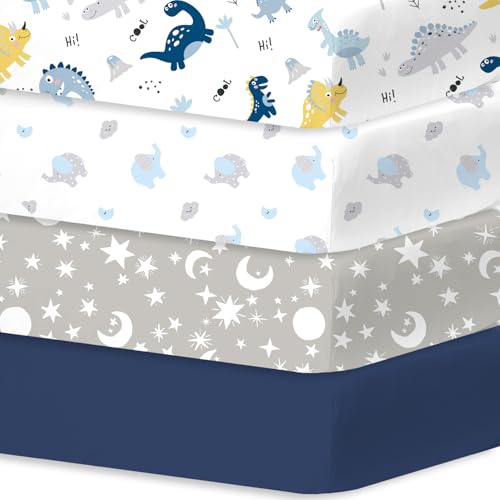 Little Grape Land Cot Sheets Fitted 70cm x 140cm, 4 Pack Baby Fitted Sheets for Boys Girl, Universal Fitting Cots and Beds, Ultra Soft Breathable Baby Crib Sheets, Dinosaur