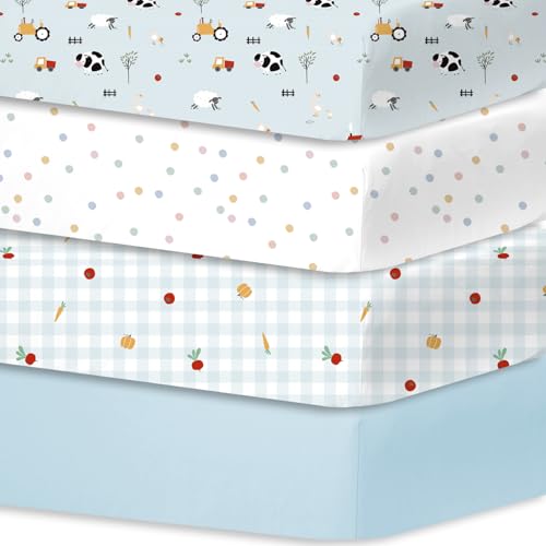 Little Grape Land Cot Sheets Fitted 60cm x 120cm, 4 Pack Baby Fitted Sheets for Boys Girl, Universal Fitting Cots and Beds, Ultra Soft Breathable Baby Crib Sheets, Blue Ranch