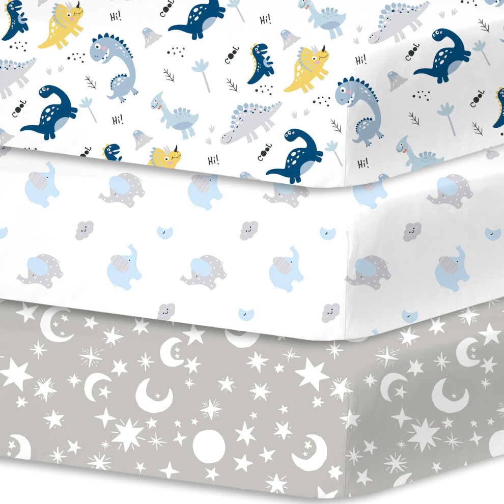 Little Grape Land Cot Sheets Fitted 60cm x 120cm, 3 Pack Baby Fitted Sheets for Boys Girl, Universal Fitting Cots and Beds, Ultra Soft Breathable Bab