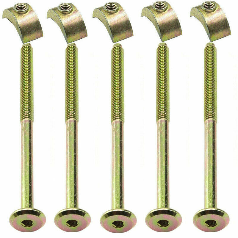 M6 Threaded Half Moon Mini Luna Washers With 140mm Furniture Connecting Bolts For Bunk Beds Cots - Set of 8