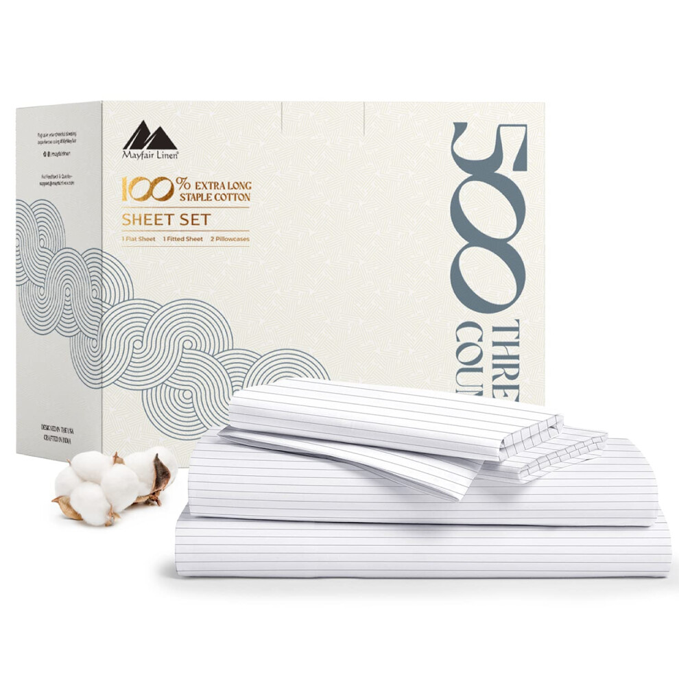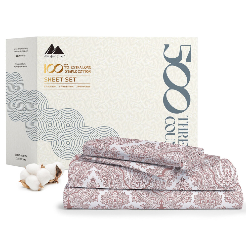 Mayfair Linen 100% Cotton Printed Bed Sheets for King Size Bed - 500 Thread Count 4 PC King Printed Sheet Set - Hotel Luxury Sateen Deep Pocket Coolin