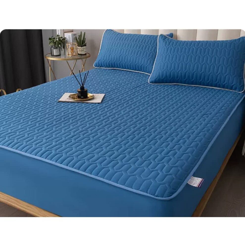MZP Fitted Sheets Only Twin Single 15cm Deep Pocket Bottom Sheet Selected 100% cotton summer Solid color Bed Sheet Small Double King Queen Super King (Color : Blue C, Size : 90x190cm)