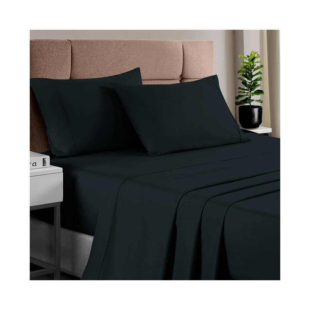Family Bedding King Size Fitted Sheets Deep Fit | Fitted Bottom Sheet King Jersey Cotton | Deep Pocket Fitted Sheet King | Bedsheet For Kingsize Bed (King, Black)