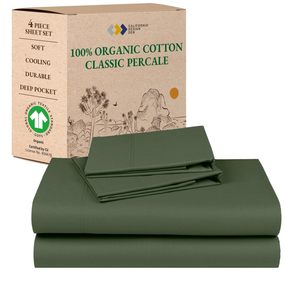 California Design Den Soft 100% Organic Cotton Bed Sheets California King Size Set with Deep Pockets - Crisp Percale Sheets Breathable and Durable B