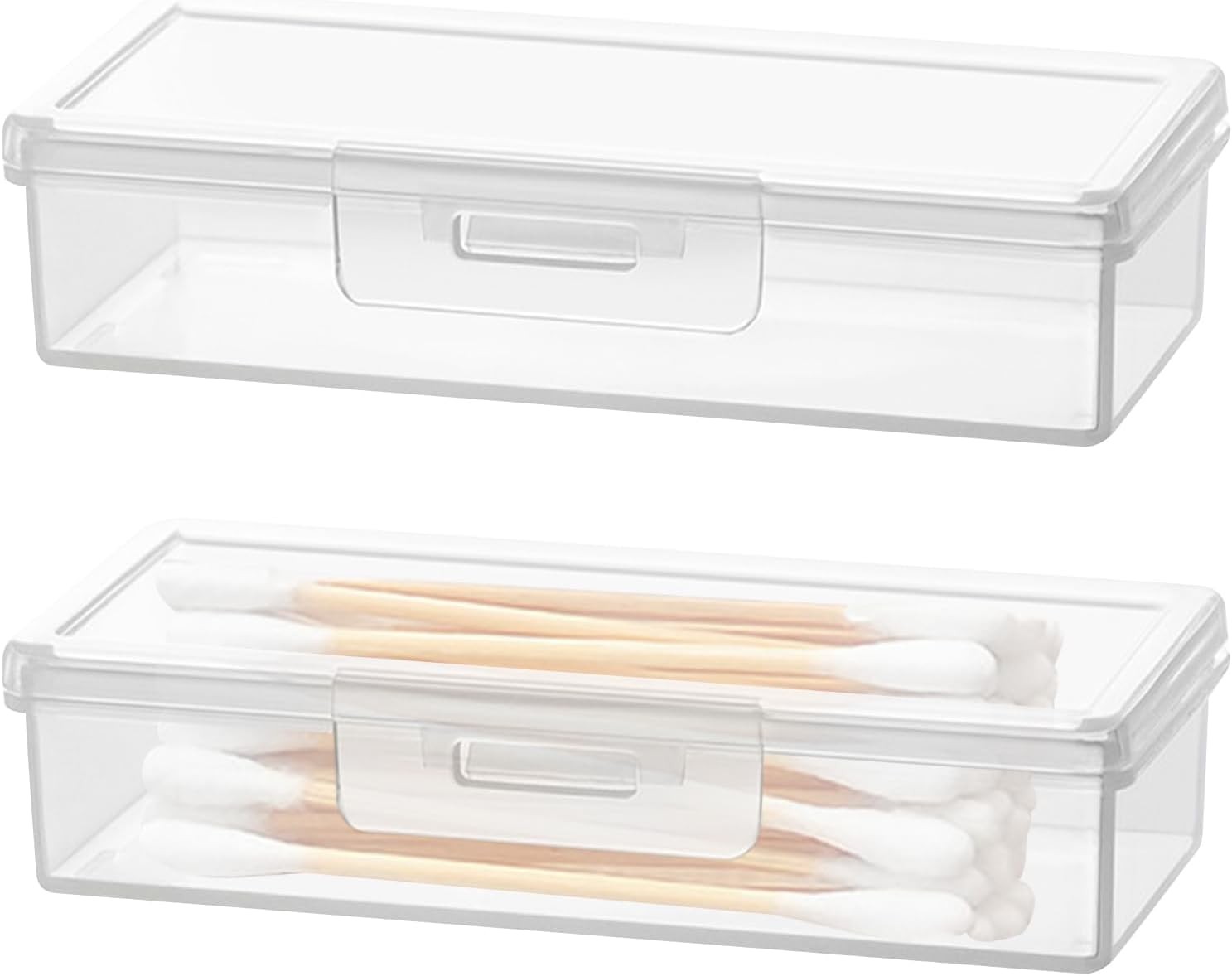 2Pcs Transparent Plastic Cotton Bud Holder, Portable Small Storage Organiser fo