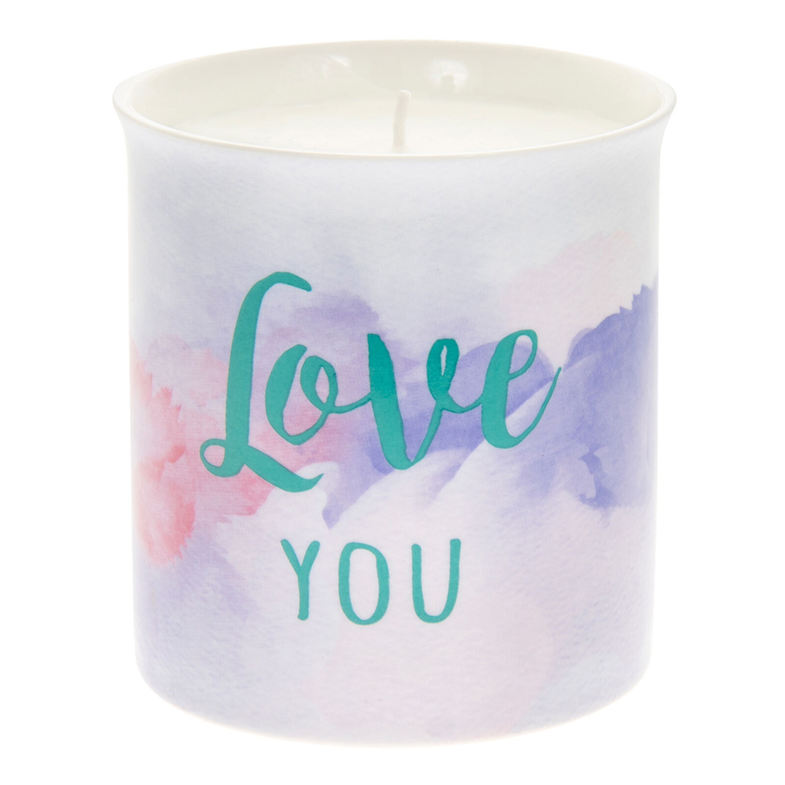 Watercolour 'Fresh Cotton' Scented Candle in China Pot with Wording - Love You