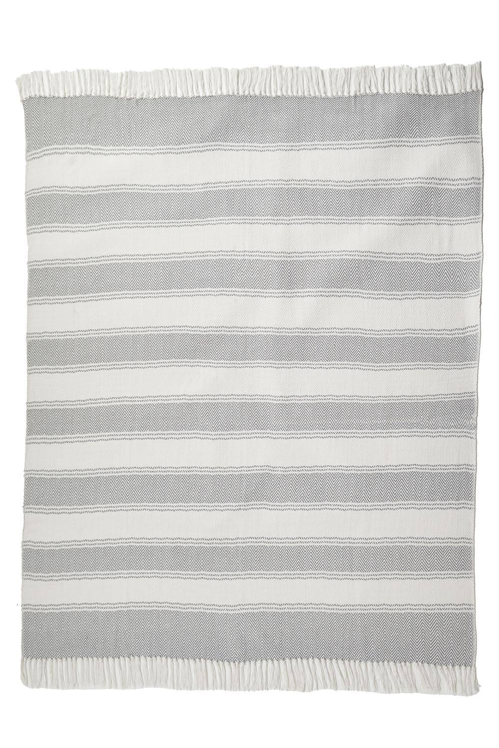 Cotton Traders Herringbone Stripe Cotton Throw (Small) in Grey