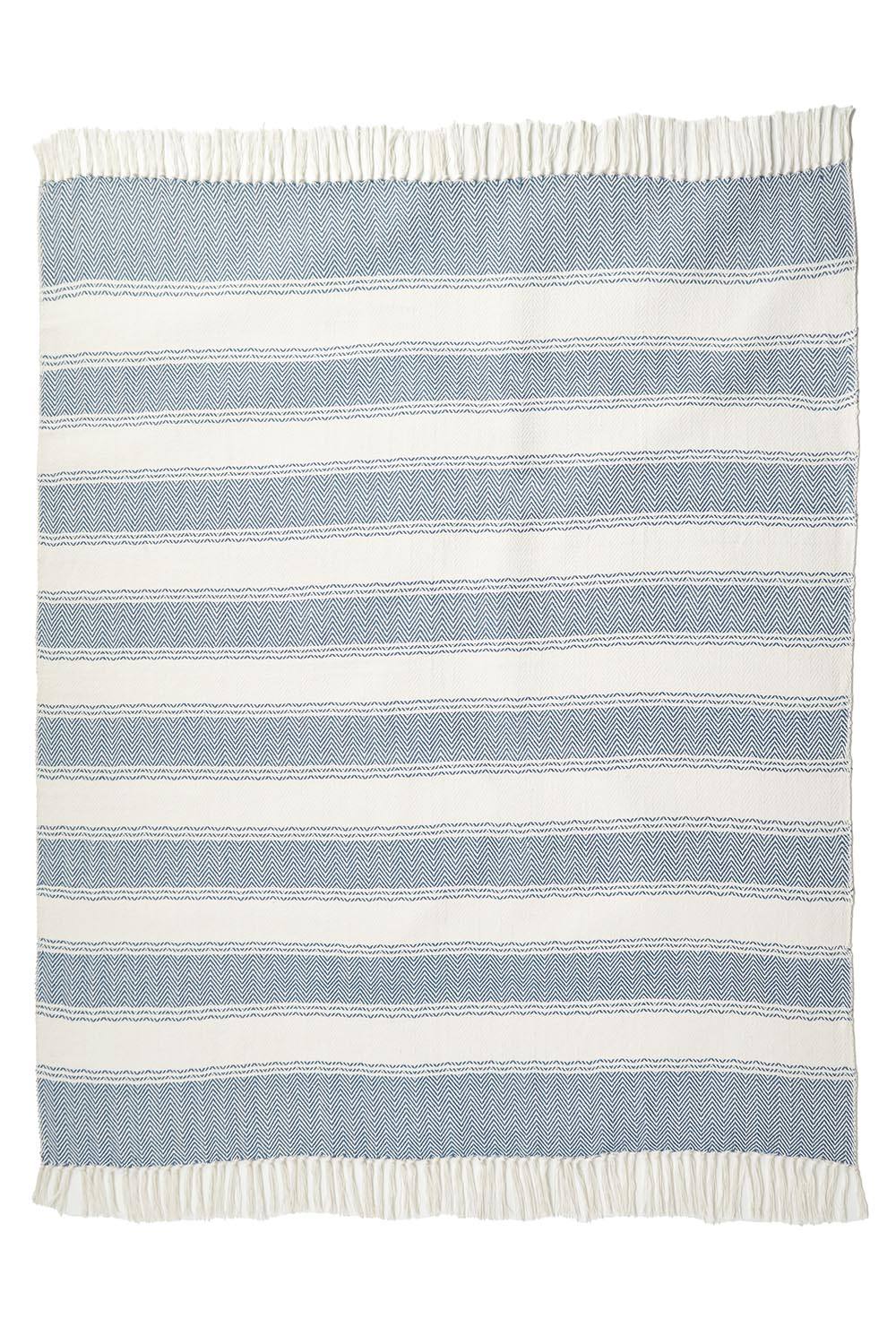 Cotton Traders Herringbone Stripe Cotton Throw (Small) in Mid Blue
