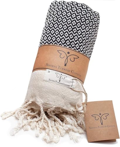 SMYRNA TURKISH COTTON Vintage Series Throw Blanket 100% Cotton | Large 127x152cm Wearable Cosy Blanket | Made in Turkey | Machine Washable | Premium Luxury Bath Towel &Picnic Rug -Black