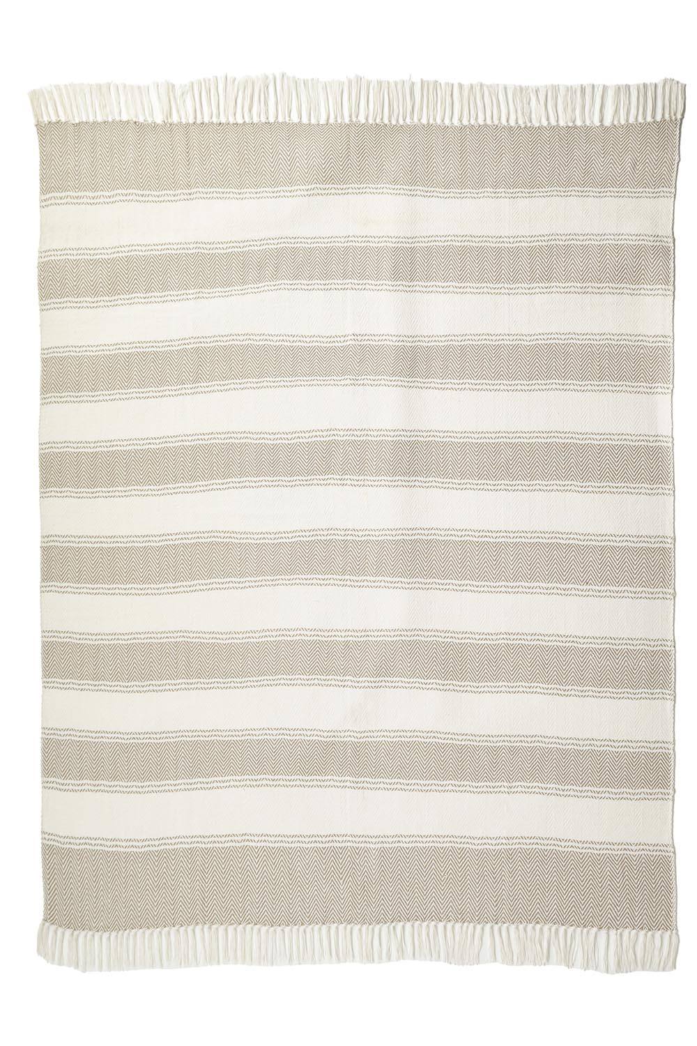 Cotton Traders Herringbone Stripe Cotton Throw (Large) in Grey