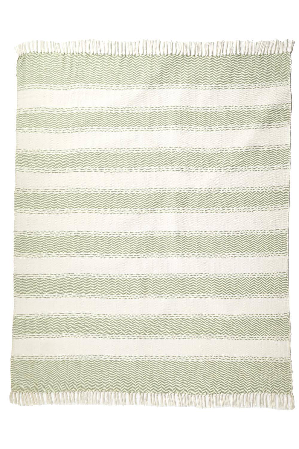 Cotton Traders Herringbone Stripe Cotton Throw (Small) in Green