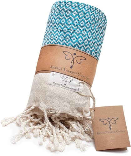 SMYRNA TURKISH COTTON Vintage Series Throw Blanket 100% Cotton |Large 152 x 205 cm Wearable Cosy Blanket |Made in Turkey|Machine Washable | Premium Luxury Bath Towel&Picnic Rug-Turquoise