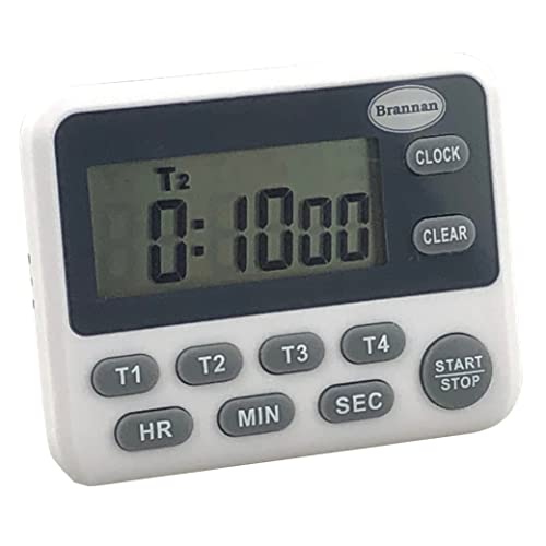 Brannan Digital Kitchen Timer For Cooking and Baking - Four Way Countdown Timer & Clock 24 Hour Count Down & Count Up Kitchen Timer - Large Easy To Read Display Stand and Magnet Back
