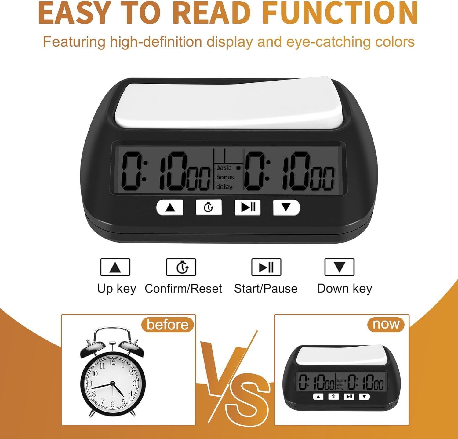 Luqeeg Chess Clock Digital Timer, Multifunction Portable Professional Battery Powered Chess Clock with Adjustable Volume & Alarm for Board Games Players Count Up/Down Timer
