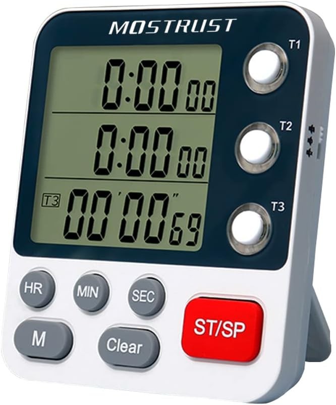 MOSTRUST Digital Dual Kitchen Timer, 3 Channels Count UP/Down Timer, Triple Coo