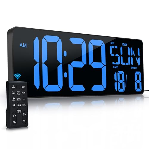 KRSTIR Large Digital Wall Clock with Remote Control, 17.2" LED Large Display Count Up & Down Timer, Adjustable Brightness Alarm Clock with Day/Date/Temperature for Home, Gym, Office