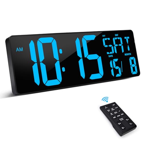 CHKOSDA LED Large Digital Wall Clock, Oversize Wall Clock with 6” Numbers, Remote Control Count up/Countdown Timer Clock, Auto Dimmer, Big Calendar and Thermometer(Ice Blue)