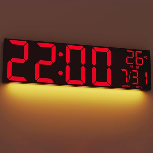 XREXS Extra Large Digital Wall Clock with Backlight, 18 Inch Wall Digital Clock with Day/Calendar/Temperature, Count Up & Down Timer, Clocks for Living Room, Office (Batteries Included)