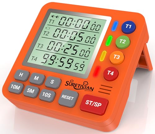 Digital Kitchen Timer for Cooking - 4 Channel Count Up Countdown Timer with Loud Alarm and Silent Mode, Large Display, Magnetic Back, Auto Memory for Classroom Study Gym, Battery Included (Orange)