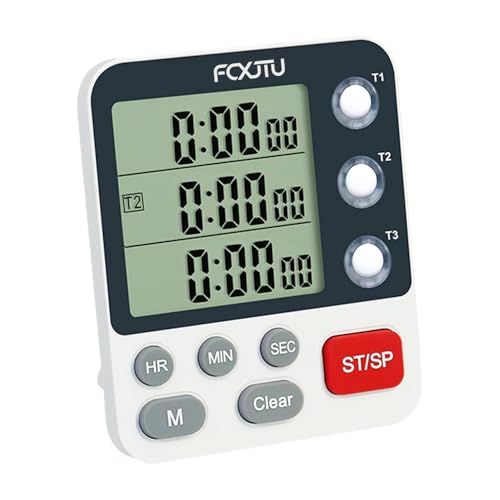 FCXJTU Digital Triple Kitchen Timer, 3 Channels Count UP/Down Stopwatch Timer, Dual Cooking Timer, Large Display, Loud Volume Alarm and Flashing Light with Magnetic Back, Stand, Battery Included