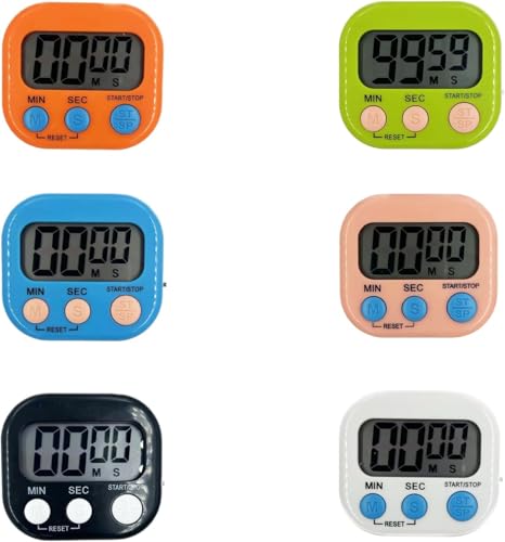 6 Pcs Kitchen Timer, Magnetic Digital Kitchen Timer, Big Digits Loud Alarm Magnetic Back Count Up Countdown Timer Perfect for Teachers,Classroom,Homework,Baking